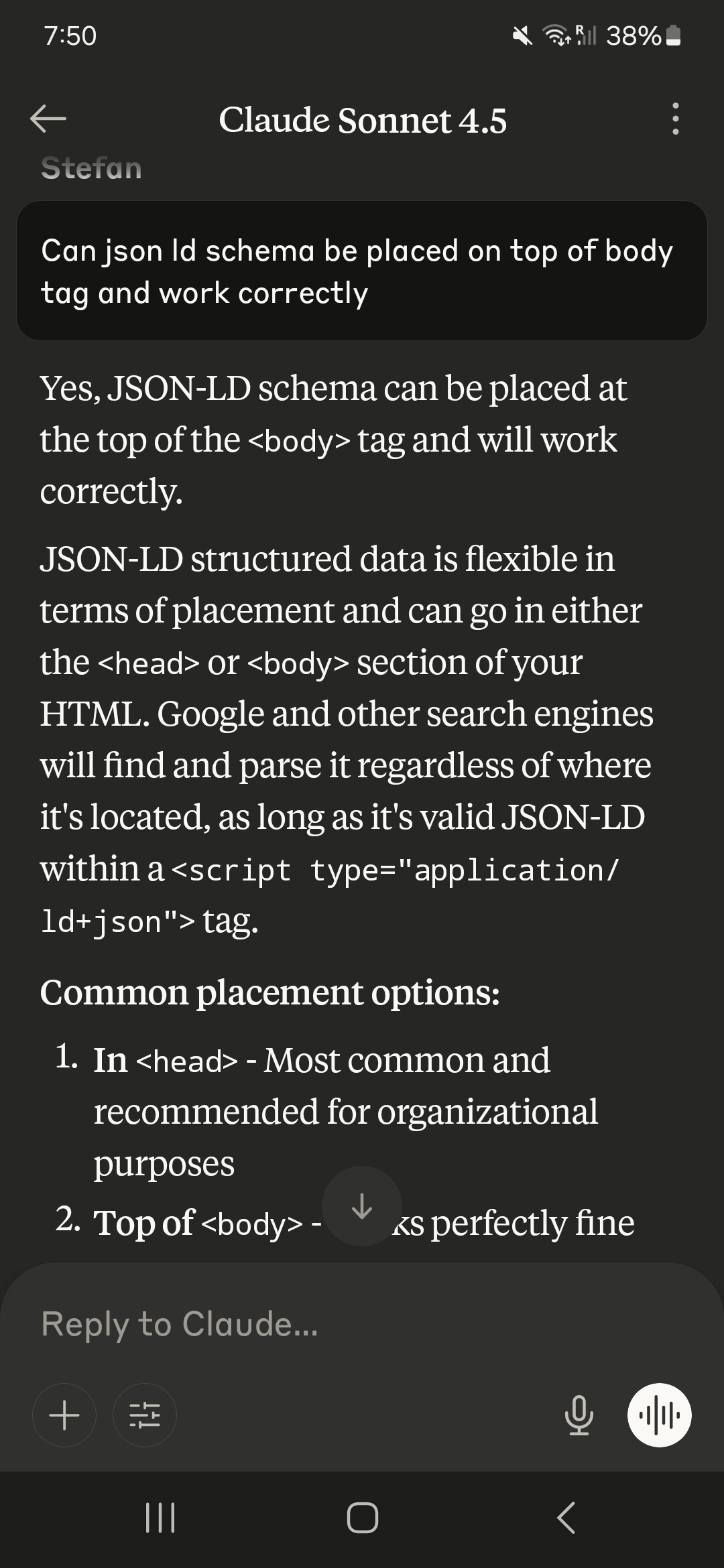 Hi embed at the top of each page is not for the header but the body. The schema info must go in the header so this is not the answer. Can you please provide the answer as to where to put the schema for the time being. Please be very precise in you answer