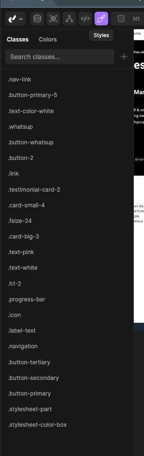 I can’t seem to find where I can see all the class names…? One nice feature Webflow had was you could see the classes, and it would tell you if the class was NOT used anywhere and it could be removed.